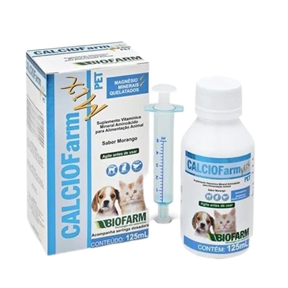 O Cálciofarm Mix Pet 125ml é um suplemento mineral e vitamínico completo, indicado para cães e gatos em todas as fases da vida. Sua fórmula balanceada auxilia no desenvolvimento ósseo, fortalecimento muscular e melhora da saúde geral dos pets.